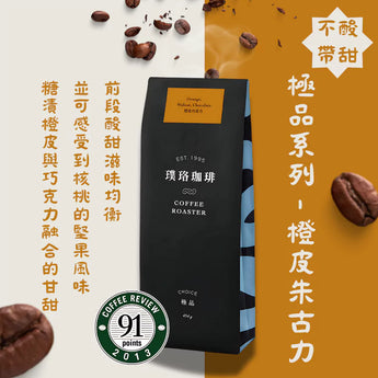 "Orange Peel Chocolate Coffee Beans 450g" is a blend of Ethiopia Yirgacheffe G2 × Brazil beans, presented in a medium roast. The primary flavor profile is brightened by orange peel and citrus notes, with the Brazilian beans providing a complementary nutty sweetness and a cocoa finish. The overall result is sweet, smooth, and highly drinkable, with a more stable and substantial mouthfeel.
