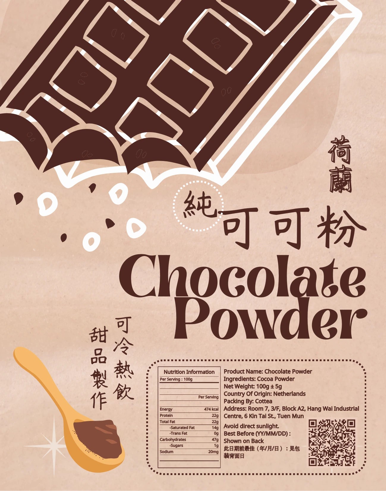 荷蘭製 100% 純可可粉 (半鹼化/無糖/豐富黃烷醇)