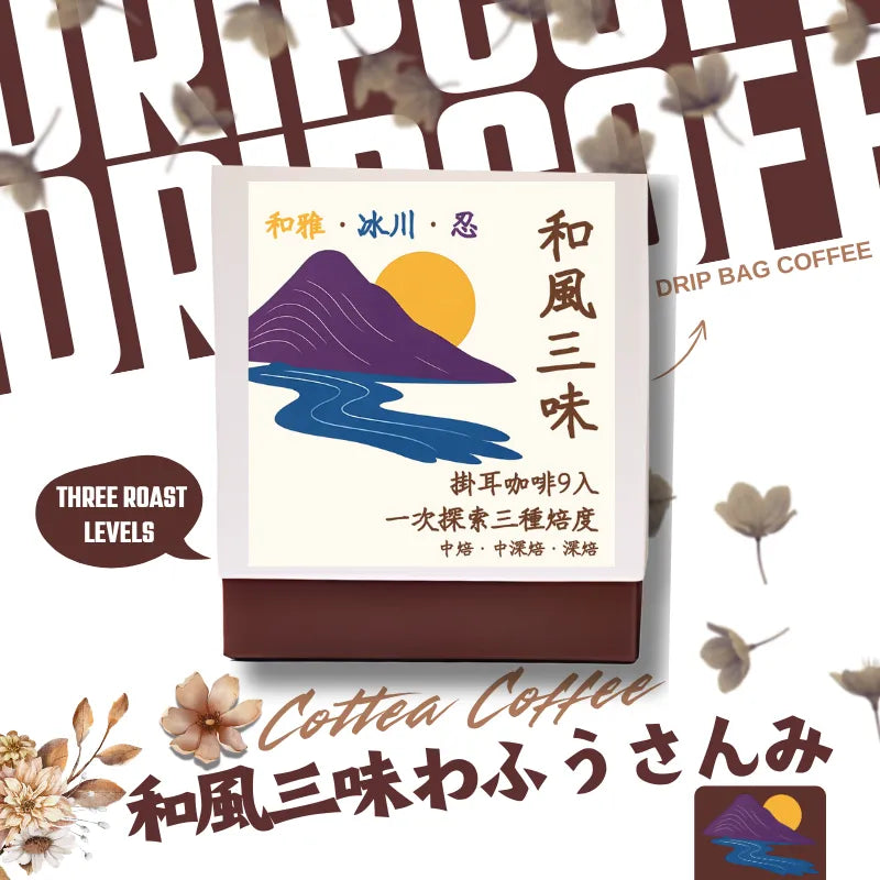 這款 「和風三味」掛耳咖啡套裝 精選三款風格獨具的精品咖啡,由 日本烘焙師田中梨香 Rika Tanaka 親自監製,結合中焙至深焙三種風格: